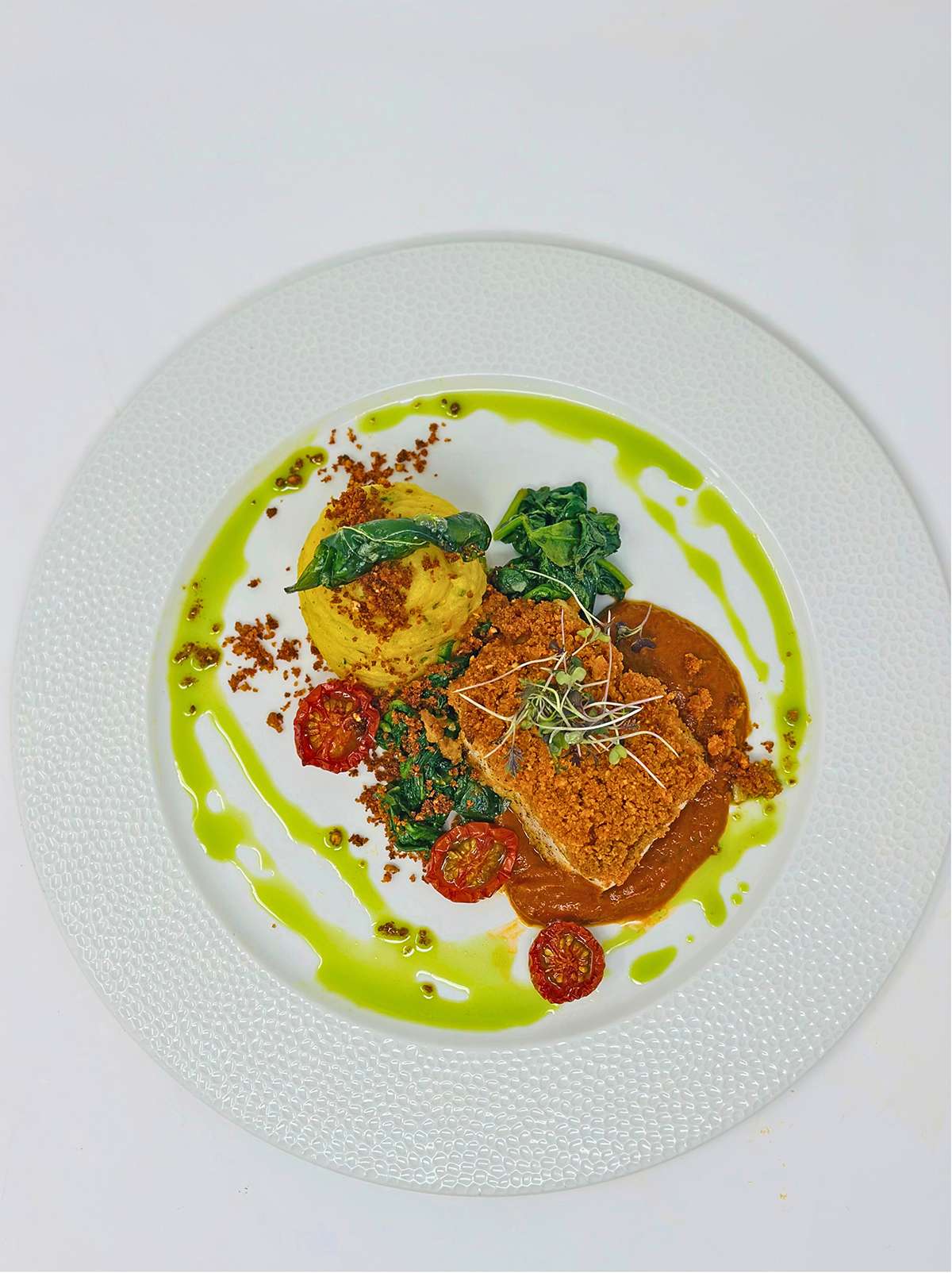 Golden saffron rice with seasonal vegetables, delicately cooked seafood, and fire-roasted chicken and sausage, finished with charred lemon and herbed oil drizzle