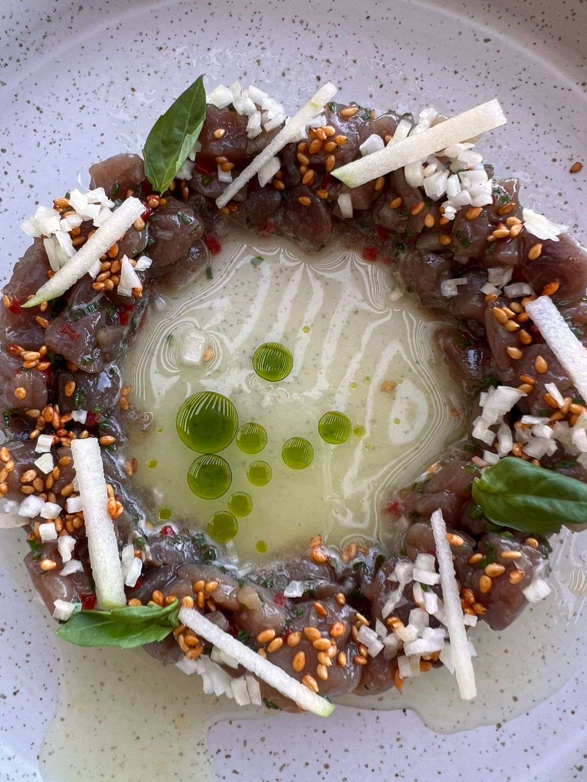 “Greek Pastitsio” (with a twist)—Paccheri pasta with braised ox cheeks, and béchamel foam