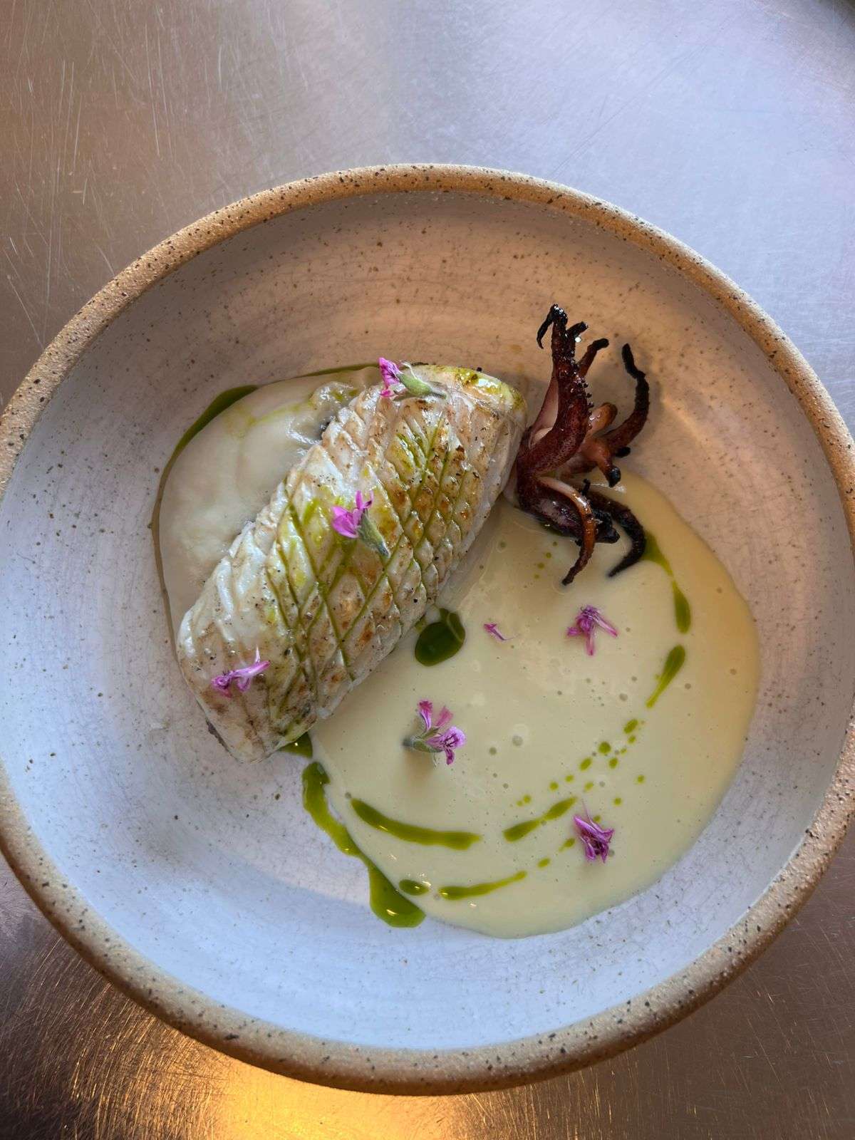 Chickpea ragout with grilled cuttlefish and spinach