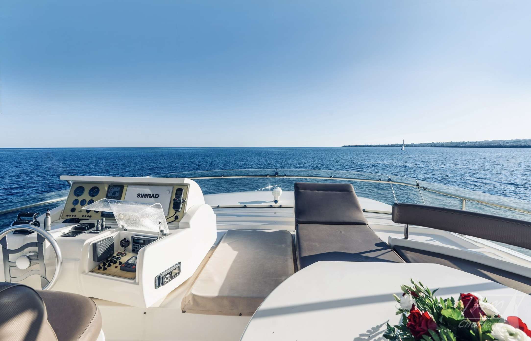 Built by Ferretti and maintained to highest standards, the Ferretti 730 Fly “Angelica” is a motor yacht that offers elegant comfort and generous living spaces. Interiors are bright and welcoming, the yacht accommodates up to 8 guests in 4 well-appointed cabins: one Master cabin, one VIP cabin, and two twin cabins — all with en‑suite bathrooms, showers, satellite TV, and air conditioning.