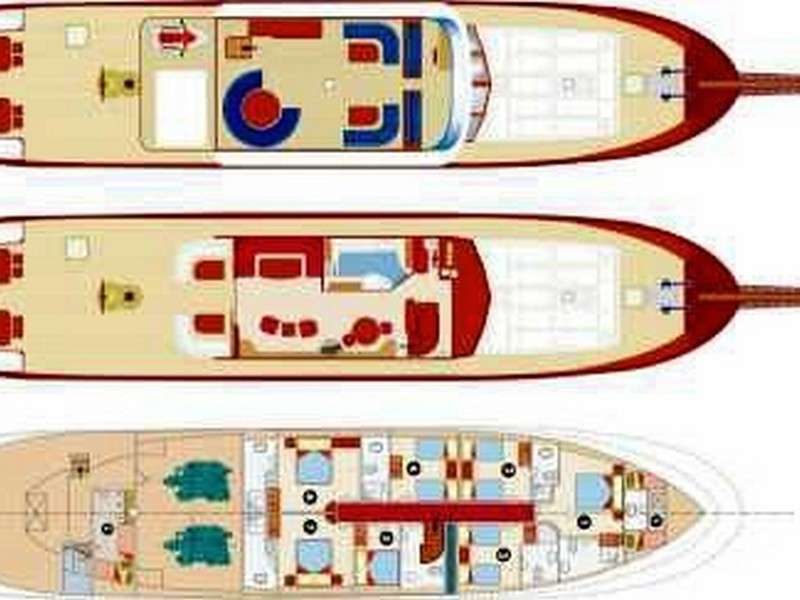 Cabin configuration: 6 ensuite guest cabins (1 x master cabin, 2 x VIP cabins, 3 x twin cabins)