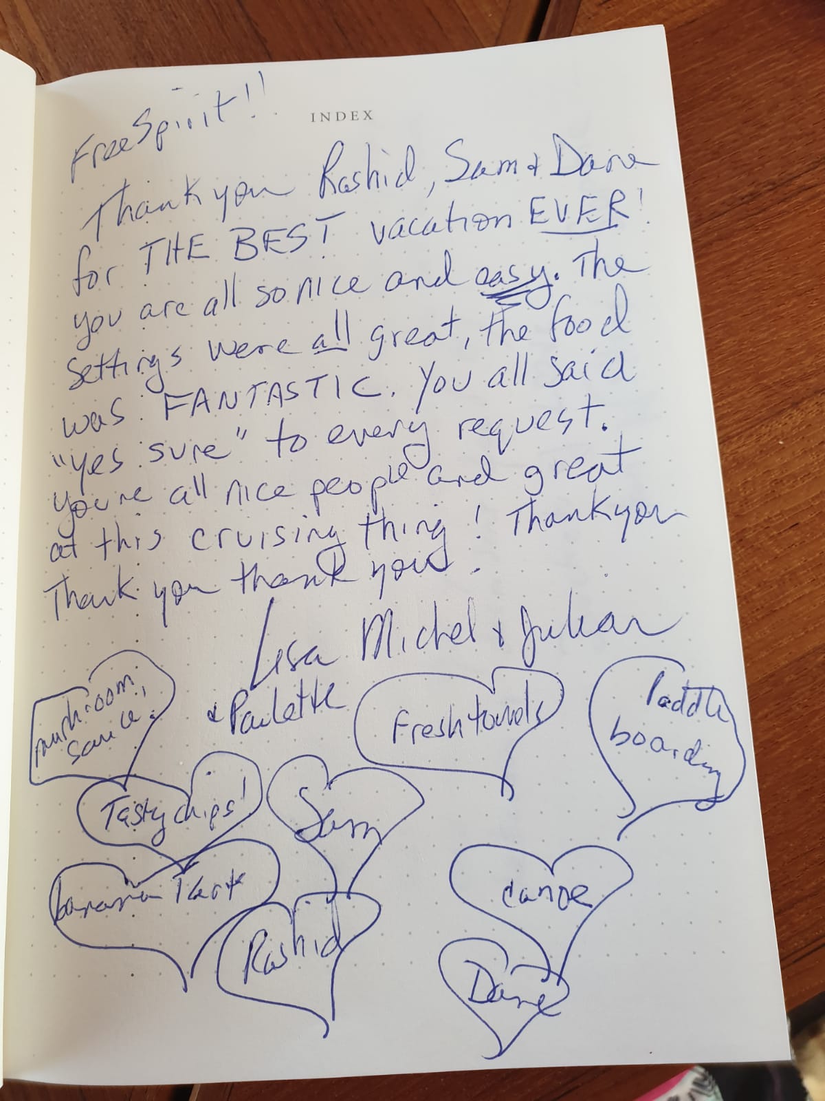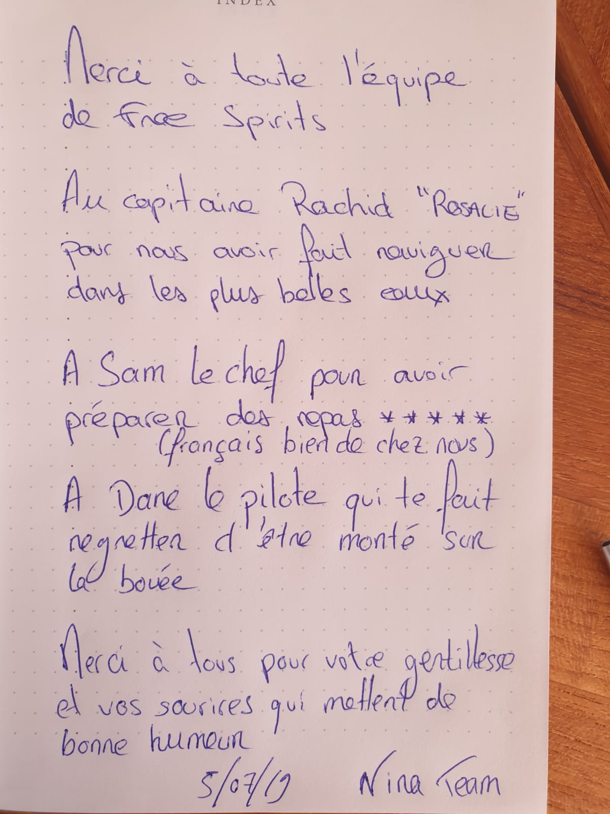 A dream week aboard Free Spirit which will remain a magical memory. The crew was perfect: attentive and so smiling, not to mention the feasts brilliantly prepared by the chef!